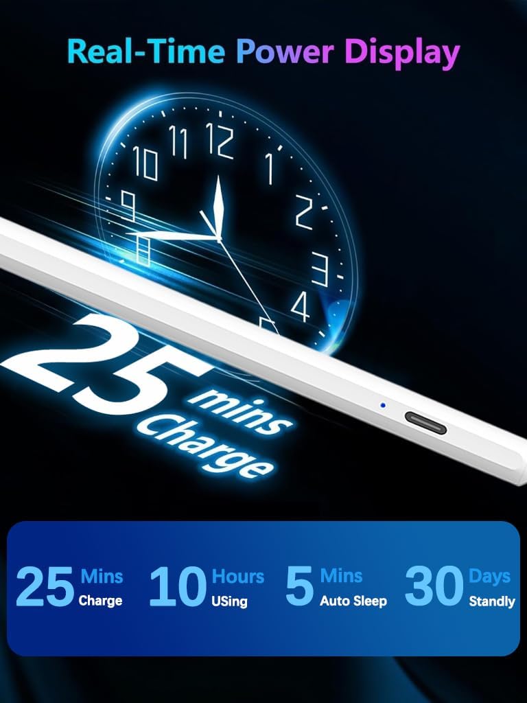 2Pack Stylus Pen Designed Specifically for iPad,Support Palm Rejection,Magnets,Power Display,No Lag/Offset/Breaking PointHow to useDouble-click the top to ON/OFF can be used.Tilt SensitivitySmoothly draw lines of different thickness by adjusting the angle your write.Palm RejectionDon't need to lift your hand while you are writing or drawing,can naturally rest your hand on screen.Magnetic absorptionDouble stronger magnetic attraction, firmly attach to your iPad.Doesn't Support Wireless Charging.Only Compatible 2018 or Later iPad ModeliPad Pro 13"(M5)2025,Model A3360,A3361,A3362iPad Pro 11"(M5)2025,Model A3357,A3358,A3359iPad A16(2025 11th Gen),Model A3354,A3355,A3356iPad Air 13"(M3)2025,Model A3268,A3269,A3271iPad Air 11"(M3)2025, Model A3266,A3267,A3270iPad Pro 13"(M4)2024,Model A2925,A2926,A3007iPad Pro 11"(M4)2024,Model A2836,A2837,A3006iPad Air 13"(M2)2024,Model A2898,A2899,A2900iPad Air 11"(M2)2024,Model A2902,A2903,A2904iPad Pro 12.9"(2022 6th Gen),Model A2436,A2764,A2437,A2766iPad Pro 12.9"(2021 5th Gen),Model A2379,A2461,A2378,A2462iPad Pro 12.9"(2020 4th Gen),Model A2069,A2232,A2229,2233iPad Pro 12.9"(2018 3rd Gen),Model A2014,A1895,A1876,A1983iPad Pro 11"(2022 4th Gen),Model A2759,A2435,A2761,A2762iPad Pro 11"(2021 3rd Gen),Model A2301,A2459,A2377,A2460iPad Pro 11"(2020 2nd Gen),Model A2228,A2068,A2230,A2231iPad Air(2022 5th Gen),Model A2588,A2589,A2591iPad Air(2020 4th Gen),Model A2316,A2324,A2325,A2072iPad Air(2019 3rd Gen),Model A2152,A2123,A2153,A2154iPad Mini(2024 A17 Pro 7th Gen),Model A2993,A2995,A2996iPad Mini 6th/5th(2021/2019)iPad 10th/9th/8th/7th/6th(2022/2021/2020/2019/2018)What You Get2Pack Stylus Pen for iPad2Pack Replacement Nib2Pack USB-C Cable2Pack Instruction Manual