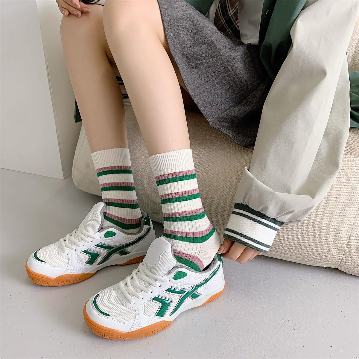 The striped designed crew socks are made of high quality combed cotton, comfortable and breathable, keeping your feet cool and dry all day. It is suitable for the whole year. And the classical striped patterns can easily match most casual dressing. It is the ideal gift for girls and women.