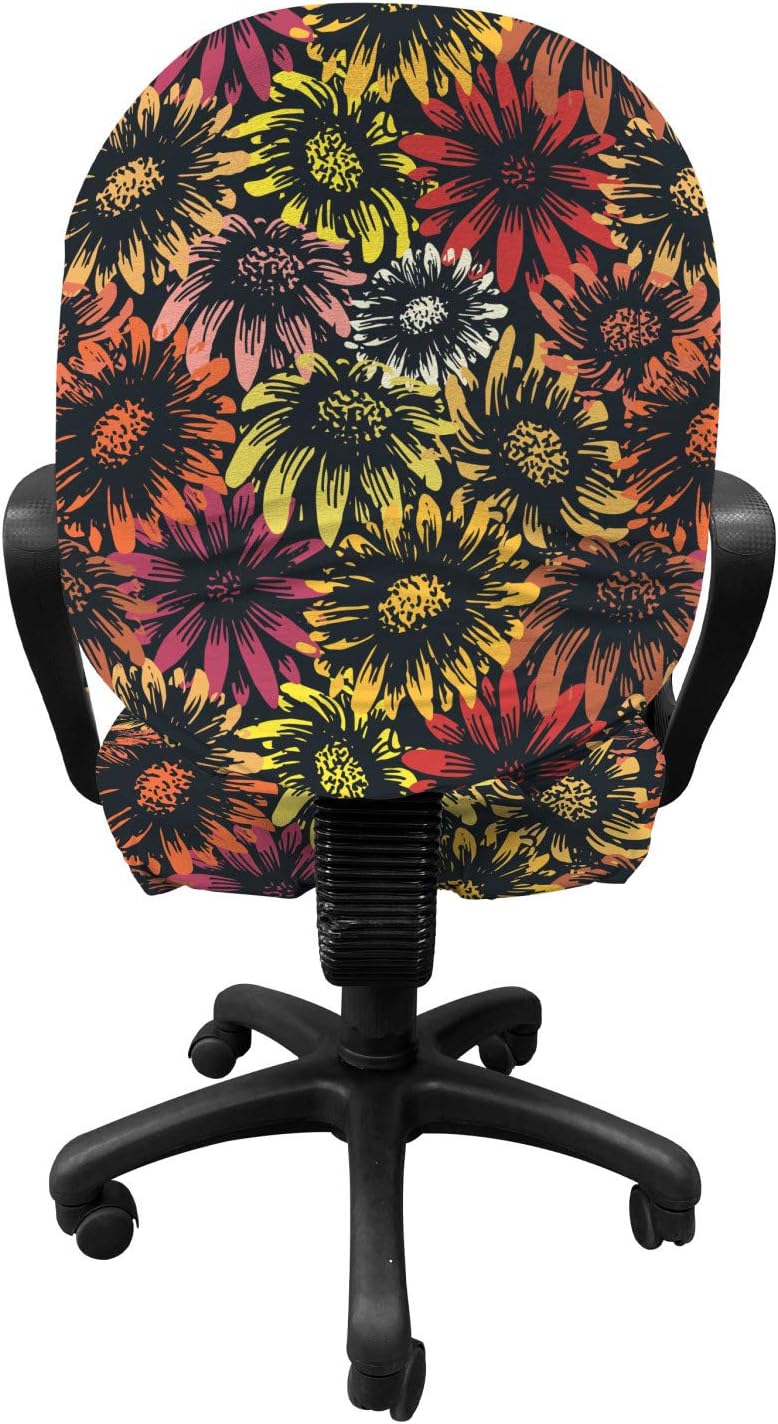"STANDARD SIZE - 2 Piece cover set. Backrest Cover: 13.5"" to 17.5"". Seat Cushion Cover: 13.5"" to 17.5"". Made in Türkiye. FEATURES - Easy to install. Has ties to fasten the seat cover. For seat & backing of office chair. MADE FROM - %95 polyester %5 spandex lightweight knit fabric. Stretchable, protective printed cover. MACHINE WASHABLE - On cold cycle, Hang to dry. Soft and breathable, durable cover. No fading. PRINTED - With state of the art digital printing technology. ONLY CHAIR COVER, CHAIR IS NOT INCLUDED Add fun to your office time! Cover tear, rips and tattered edges of your old chair. It's easy to install and remove with smart elastic design. Protective and non-slip cover fits universal standard size office chairs. The material is lightweight, thin but durable. It'll add ultimate style to your gaming chair or studying area. Set assorted modes for every season; summer, Christmas, St Patrick's Day, Valentine's Day, Autumn, Sports Week and any theme you can imagine... Just pick your favorite from our thousands of various patterns. Also, these office chair covers are easy to take care of; machine washable, tumble dry on low. Or just buy one to make your day! This desk chair seat cushion protector adds personality to your space as well as shields from scratches, spills, and accidents. Elastic edges secure the cover quickly. With its stretchable design, it fits square or round seat cushions and backings of simple standard office chairs. These protector covers can be a gift for your co-workers, mother, father, uncle, aunt, son, daughter, boyfriend, girlfriend, husband, wife or simply white-collar worker friends. Before purchasing, please measure your chair size. The digital images we display have the most accurate color possible, however, due to differences in computer monitors, we cannot be responsible for variations in color between the actual product and your screen. ONLY CHAIR COVER, NO CHAIR. "