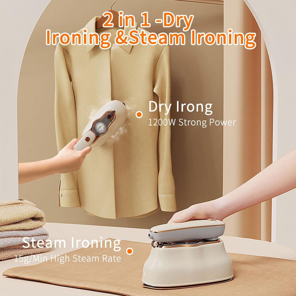 Travel Steamer Iron for Clothes 1430W Portable Travel Steamer Iron for Clothes - 3 Modes, Temperature Display, 10S Fast Heating, 180° Swivel Handle, for Home, Dorm, and Travel