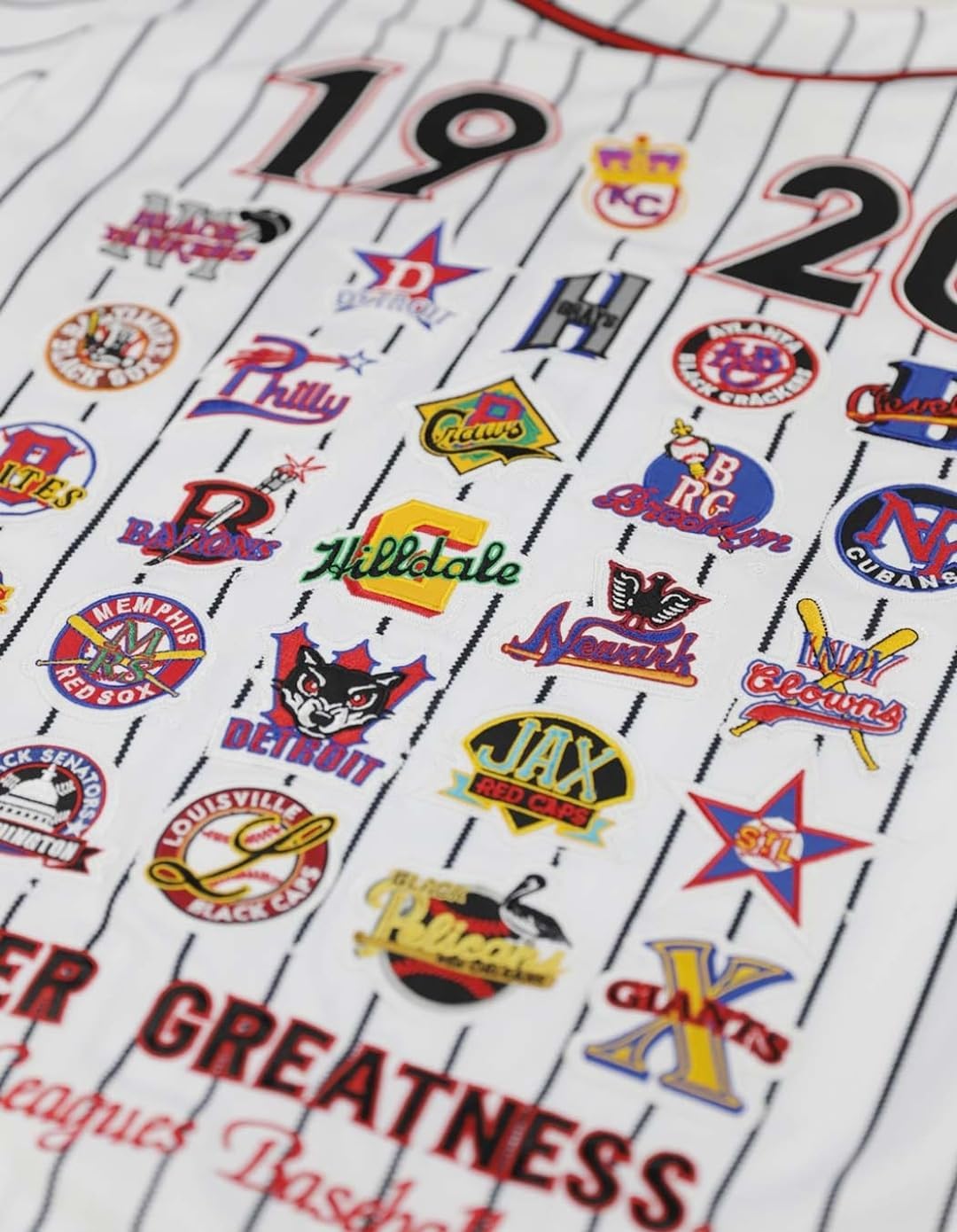 NLBM COMMEMORATIVE BASEBALL JERSEYColor : WhiteFeatures- 100% Cotton- Team logo embroidery on sleeve front & backProduct Care- Hand wash cold- Hang dry- Do not bleach- Cool Iron