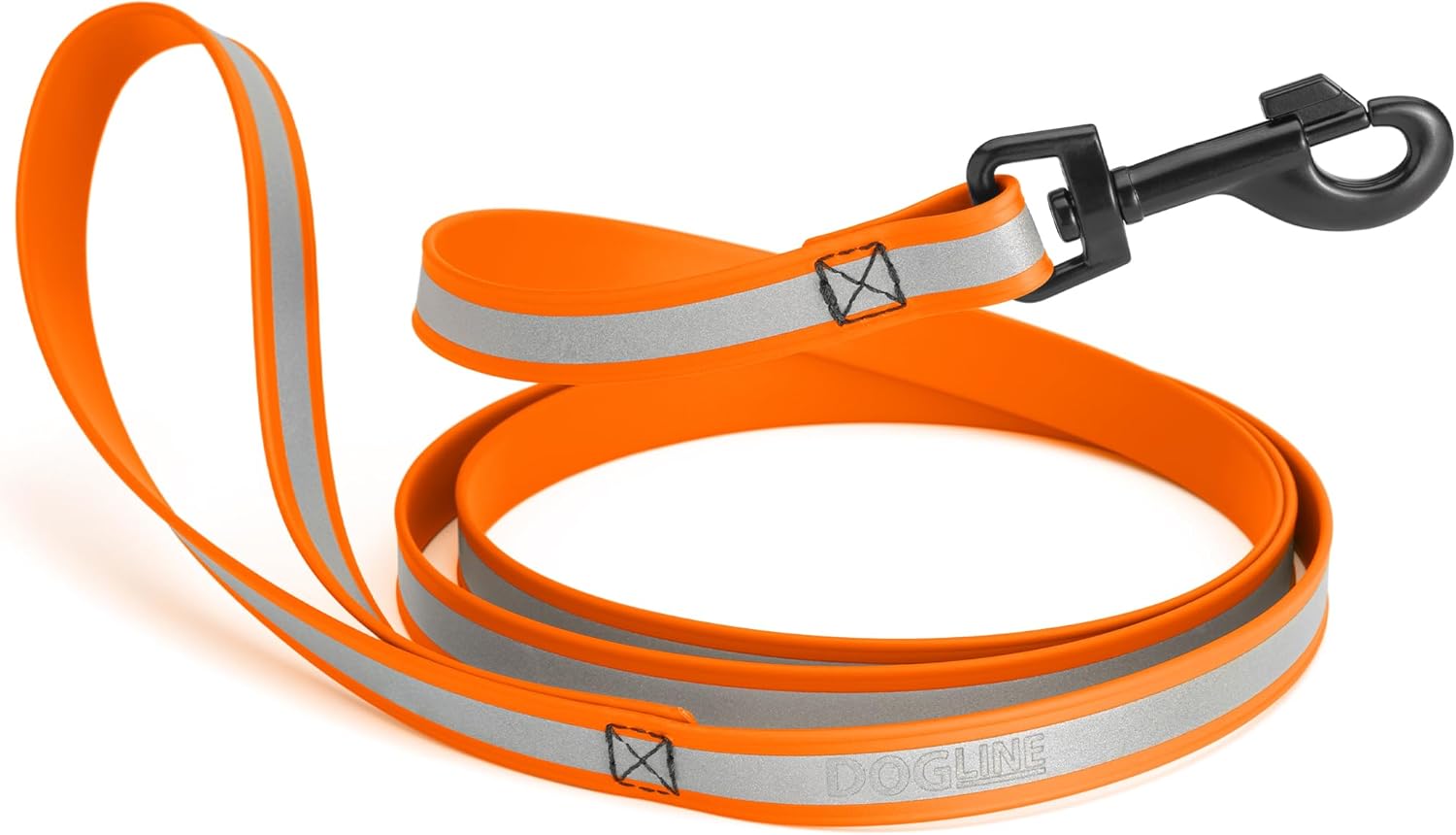 Dogline focuses on providing high quality, innovative pet supplies designed with your best friend’s comfort and safety in mind, as well as your own. We make it a rule to work only with premium grade materials and reliable manufacturers in order to live up to your rigorous expectations. Modern and Colorful Reflective Dog Leash – Your Pet’s Everyday Companion The Dogline heavy duty dog leashes are the perfect combination of functionality and style. They minimize accident risk by keeping your pet visible on the road, while also keeping them looking great! With top quality waterproof materials, odor-proof and easy to clean, a rotating black snap hook, and availability in various colors and sizes, this reflective safety leash suits both everyday wear and special occasions! Still not convinced? Here are some of the amazing features of this leash for dogs: 4ft leash and 6ft leash come in two widths: 3/4” and 1”; Our dog lead is available in black, blue, orange, and pink colors; Waterproof dog leash is durable and long-lasting; This easy washable dog leash is stink proof and water proof; Safe night walking with highly visible reflective strip; Made in USA. Your dog will absolutely love this biothane leash!