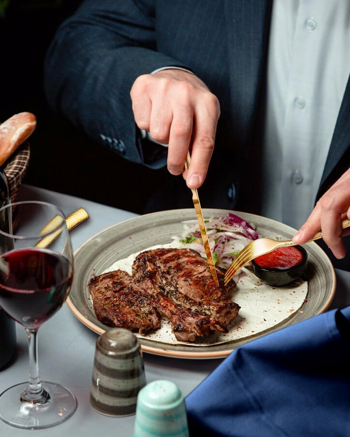 | Included Components | This silverware set comes with 8 dinner knives, 8 dinner forks, 8 dinner spoons, 8 salad forks, 8 teaspoons, and 8 steak knives |