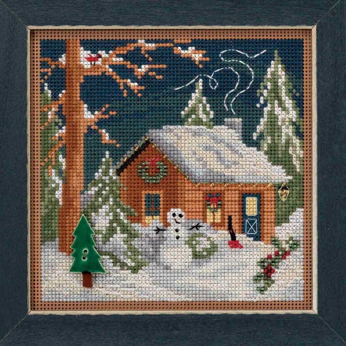 Christmas Cabin Beaded Cross Stitch Kit - Mill Hill 2018 Buttons & Beads Winter Series MH141834 - Kit makes one Christmas Cabin design suitable for framing. Materials Included: Mill Hill Glass Beads, Polymer Clay Button by JABC, Mill Hill 14 Count Painted Perforated Paper, floss, needles, and chart with instructions. Materials Recommended: 6 x 6 Matte Blue Mill Hill Solid Color Wooden Frame GBFRM2 (sold separately). Approximate Finished Size: 5.25 x 5.25 inches (13.3 x 13.3 cm)