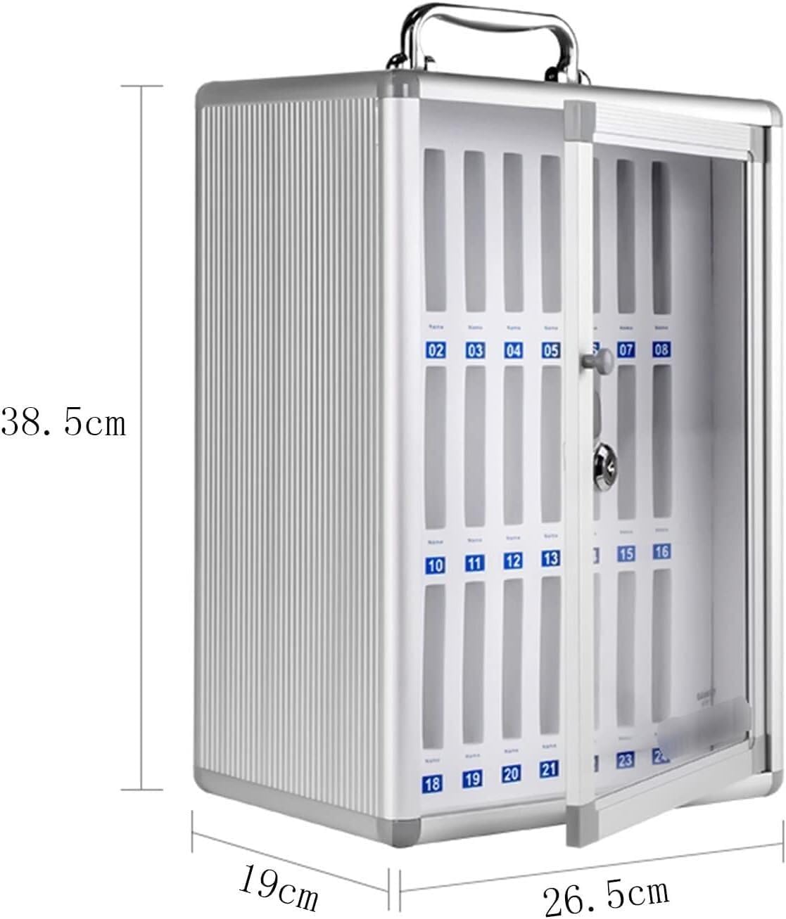 Suitable for a variety of , helping to attention and enhance learning and work efficiency. Designed to store various types of mobile phones, each compartment is numbered for easy identification.Product Name: Mobile Phone Safe Product Specifications: Holds up to 24 mobile phones Product Material: Aluminium alloy + acrylic glass Design: Handle with a safety lock Installation Method: Wall-mounted/portable Dimensions: 24: 26.5 × 19 × 38.5 cm (10.4 × 7.5 × 15.2 inches);【Note】 1. We only sell mobile phone storage boxes; other items are props. 2. Due to differences in photography equipment, there may be slight colour variations, which are not quality issues; please refer to the actual product. 3. Manual measurements may have an error of 1-3 cm; please refer to the actual product; please understand.If you have any questions, please contact our customer service