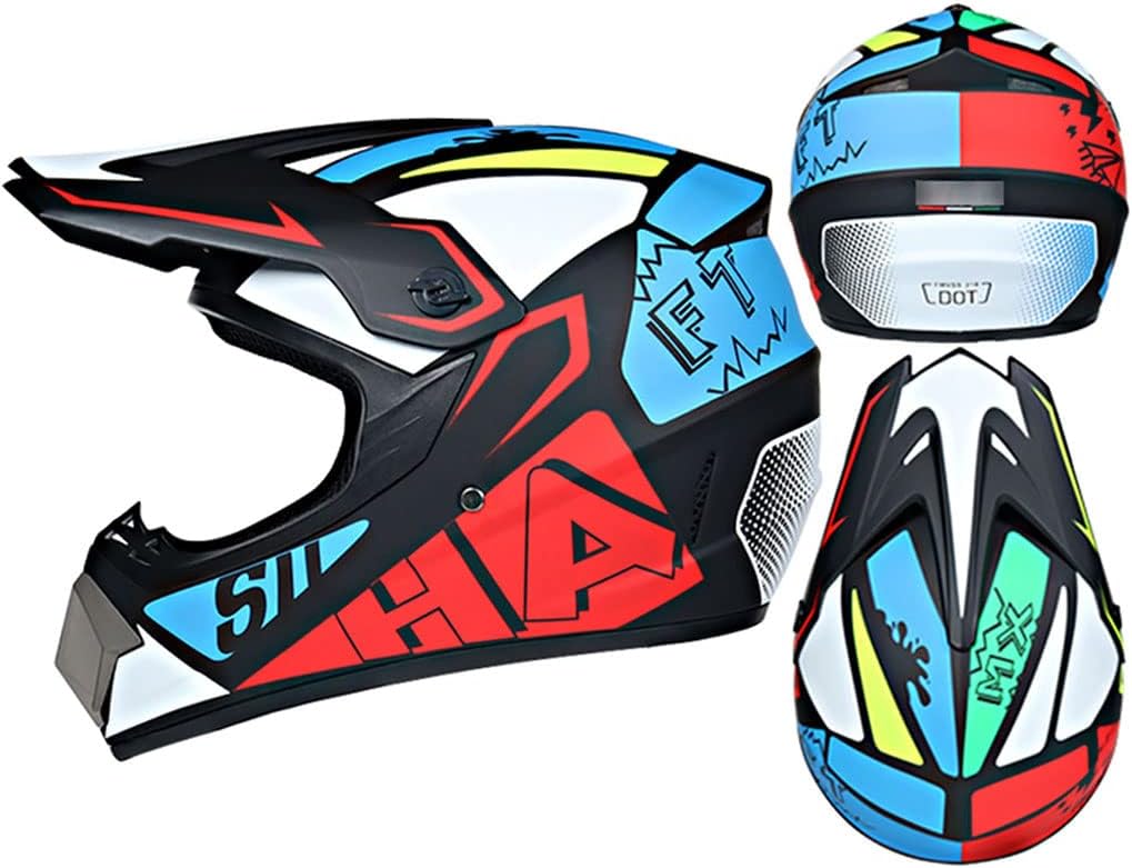 Downhill helmet setMaterial: high quality ABS material + EPS inner helmetWeight: about 960gApplicable season: all seasonsApplicable people: adults, teenagers, boys, girlsScope of application: bicycle / motorcycle / locomotive / electric car / scooter / cross-country / endurance / flight / skiing and other safety protectionThis is a very good gift for childrenHelmet size:S: 55 ~ 56cm/21.65-22.04inM: 57 ~ 58cm/22.44-22.83inL: 59 ~ 60cm/23.22-23.62inXL: 61 ~ 62cm/24.01-24.40in(This product is measured manually, the error is generally 1-2 cm)Quality and safety standardsUnited States: DOT, FMVSS-218 standardEU: ECE R 2205 standardProduct List:1* Motocross helmet1* Gloves1* Mask1* Goggles● Depending on the light, the display color and the shooting angle, the color may be slightly different. According to the actual product color● (The new helmet may have a slight odor. Please put the helmet in a ventilated place, it will gradually disappear after a few days)● If you encounter any problems during the purchase and transportation, please contact us by email, we will provide you with the best solution within 24 hours.