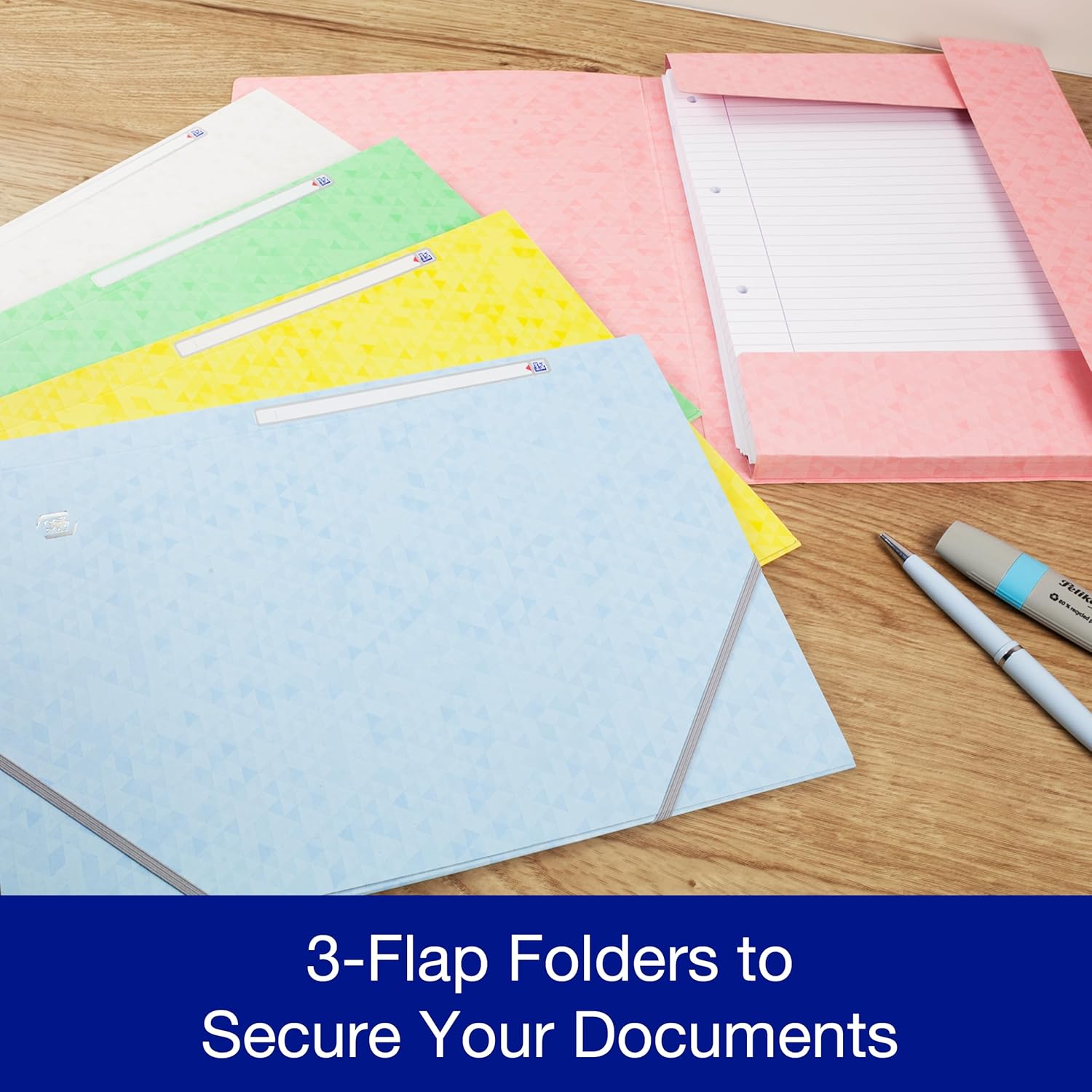 Carry loose sheets and papers around in these lightweight yet practical three flap folders. Documents are kept secure with the elasticated straps and the strong pressboard material will ensure your papers don't get damaged. Ideal for filing on the go.