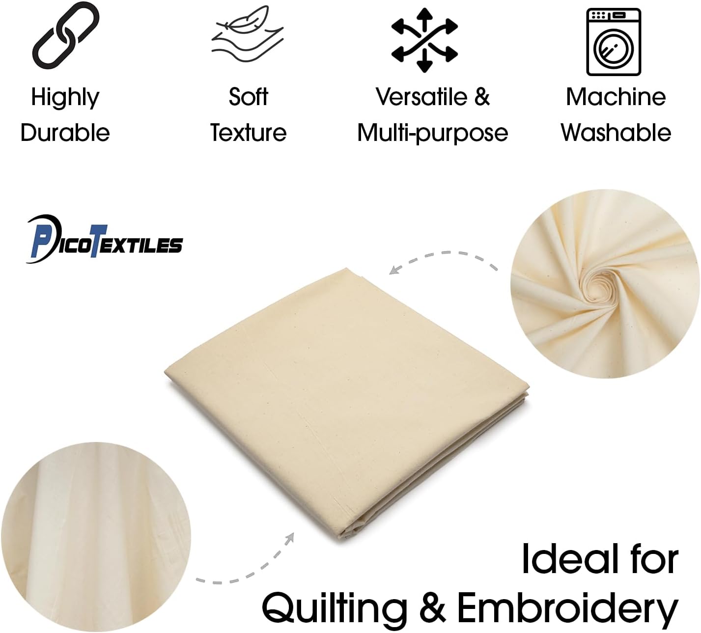 Pico Textiles 3 Yards Bolt - Natural Unbleached Muslin Fabric - Medium Weight - 100% Cotton - 60" Wide - Muslin Fabric is sold by 3 yard sections. Each quantity is 3 yards. Example: Quantity of 2 will be 6 yards shipped as 2 separate 3 yard bolts.