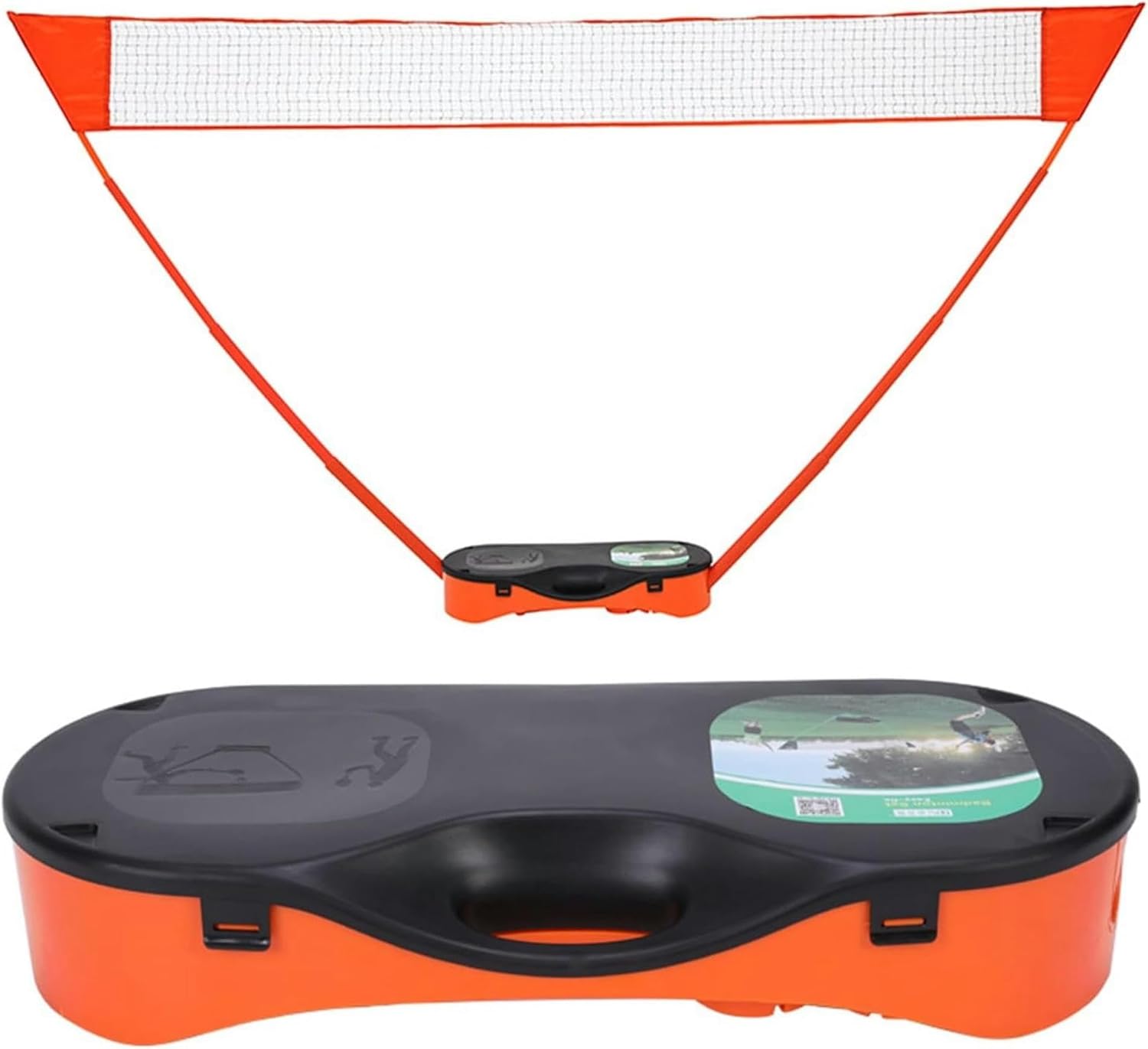 Assemble AnywherePlay badminton in the park, on the beach, or at a tail gate. Portable Badminton Set can be assembled on any flat surface, for entertainment fun wherever you are on the beach, backyard, gym, basement, parties, camping, or family funs, anywhere!Stakes or Tools RequiredThe base is completely free-standing, with two telescoping poles that easily extend and contract and a simple slide-on net. No stakes or tools to put in the ground or long setup time. Easily move it from one location to another without any hassle.Base Doubles as Carrying CaseThe base of Portable Badminton Set also doubles as a convenient and lightweight carrying case. Completely contain and transport all parts in a compact case with a handle.