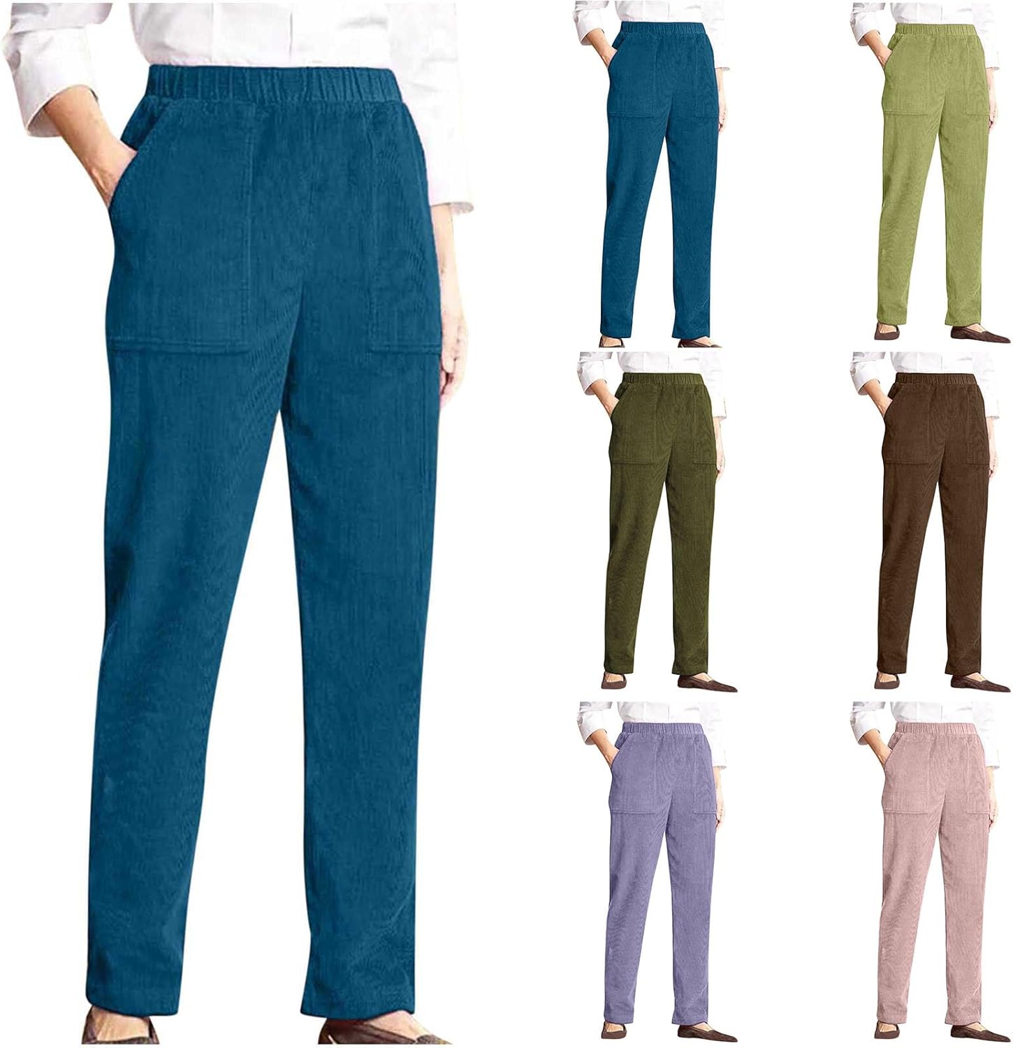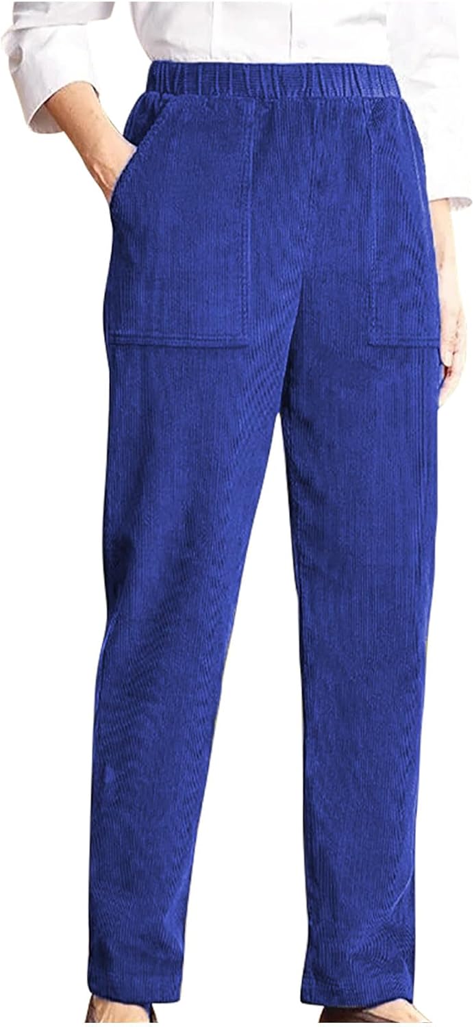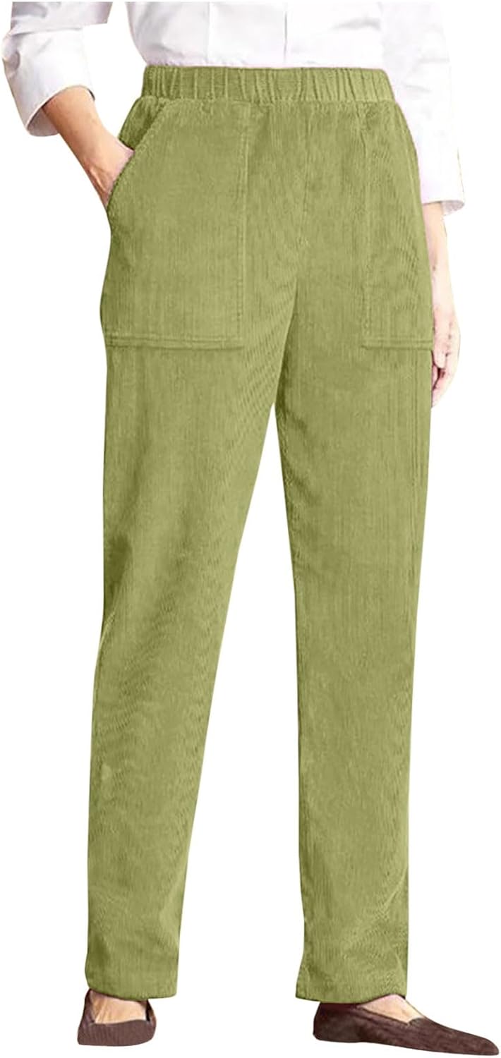 Corduroy Pants for Women High Waisted Fall Winter Elastic Waist Stretchy Work Casual Trendy Wide Leg Pants Discover the blend of timeless style and everyday comfort with our Women's Corduroy Pants. Crafted from soft, mid-wale corduroy fabric, these pants offer a subtle texture and a cozy feel that is ideal for fall and winter seasons. The relaxed fit design provides ample room for movement without sacrificing style, creating a sleek and modern silhouette that flatters various body types. The versatile straight leg cut makes them easy to pair with your favorite footwear, from casual sneakers to ankle boots. Product Highlights & Features: Fabric: Made from a cotton blend corduroy that is soft to the touch, durable, and provides optimal warmth. Fit: Relaxed through the hip and thigh with a straight wide leg opening. Mid-rise waist for comfortable all-day wear. Versatility: A transitional piece great for creating numerous outfits, from casual weekend looks to more put-together office attire. Care: Machine washable for easy care and maintenance. Complete Your Look: These corduroy pants are a versatile foundation for your cold-weather wardrobe. Layer them with a classic knit sweater and a long coat for a chic, urban look, or keep it simple with a fitted top. Feature:Pants For Women Casual chino pants for women early fall fashion wide leg casual pants for women business casual pants palazzo pants for women casual lounge pants women high waisted wide leg pants for women office pants for women wide leg lounge pants for women