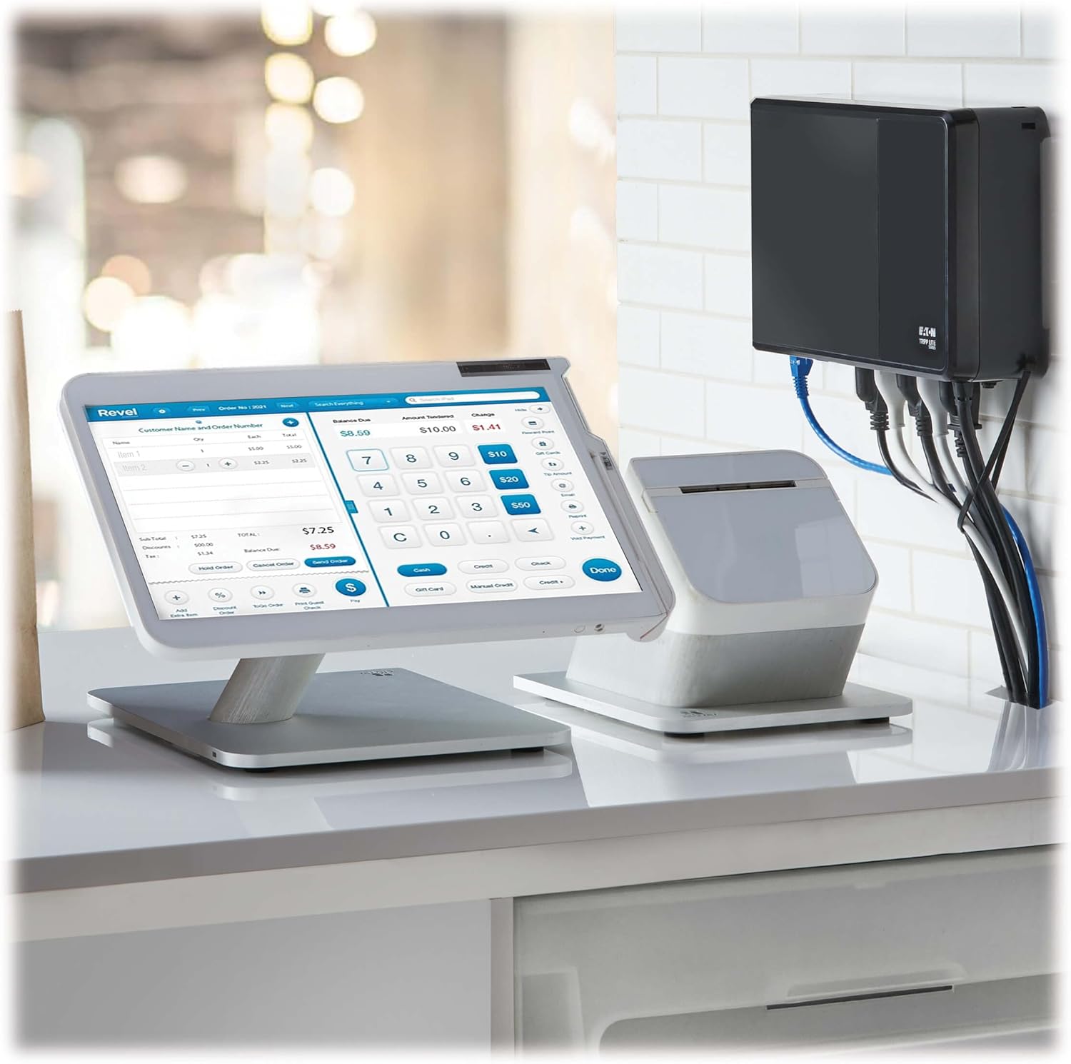 850VA/450W/120V Battery Backup for PCs and Retail Point-of-Sale Applications Eaton’s Tripp Lite series cloud-connected UPS systems are manageable, scalable and flexible solutions for battery backup, surge protection and cloud-based remote monitoring. Whether a deployment includes a single UPS or an entire fleet, remote management using a mobile app or web browser saves the time, hassle and expense of frequent on-site visits. From home networks to retail kiosks, Tripp Lite series cloud-connected UPS systems enable uninterrupted operation for a wide range of devices in diverse environments. The BC850RNC standby UPS system provides reliable battery backup and AC power protection against blackouts, brownouts, overvoltages, surges and line noise for home/office computing, networking and point-of-sale equipment in retail, kiosks, food service and light industrial environments. It’s easy to set up in minutes. Just plug the BC850RNC into a properly grounded wall outlet, press the power button and connect equipment to the UPS outlets. For easy access, the input power cable, Ethernet port, AC outlets, power button and status LEDs are all on the same side. Easy-to-Use Cloud-Enabled Remote Monitoring Powered by Brightlayer Connect the UPS to a network with an Ethernet cable. Built-in cloud connectivity removes the need for additional hardware, saving space and equipment costs. Scan the QR code on the UPS to download the remote monitoring app on a mobile device. Set up an account and scan the QR code to seamlessly add the UPS to your account. For access on a desktop computer, use the provided web address. Eaton’s cloud-based remote monitoring dashboard offers convenient setup, control and management of a single UPS or a larger deployment. Receive alerts, push configurations, silence alarms or control outlet banks using a mobile app or web browser. Accessible via mobile device or desktop computer web browser, the simple color-coded dashboard provides a quick visual indication of device status: alerts (red), warnings (yellow) or normal operation (green). Alerts can be sent to a mobile device, providing early awareness of issues that can cause downtime. Configure network settings using the mobile app, tap the NFC (near-field communication) area on the UPS with your mobile device and push your custom settings to the UPS. Configure once and push settings to as many UPS systems as needed. Allows Time to Back Up Critical Files During a Blackout During short blackouts and brownouts, the BC850RNC switches to battery power to keep connected equipment running. This allows you enough time to save data and complete a safe shutdown in case of a longer outage. Incoming utility power keeps the user-replaceable VRLA battery fully charged, so backup power is always available. The BC850RNC restarts automatically once power is restored, regardless of battery charge level, saving you a costly site visit. Premium Protection from Surges and Line Noise Helps Your Equipment Perform Better Rated for 190 joules of surge suppression, the BC850RNC and its five NEMA 5-15R outlets protect connected devices from the harmful effects of power surges. The BC850RNC also filters out disruptive electromagnetic interference (EMI) and radio frequency interference (RFI) that can destroy data and contribute to lengthy downtime. Easy Preventative Maintenance and Initial Troubleshooting The BC850RNC's self-test capability and user-replaceable internal battery can extend the life of the UPS and minimize disruption to operations. A resettable circuit breaker helps prevent dangerous system overloads. Audible Alarm and Diagnostic LEDs Keep You Informed 24/7 An audible alarm and a red LED indicate a low battery or fault condition. A green LED indicates power and line/battery mode status. Hardened Housing Compatible with Versatile Deployment Options The low-profile housing allows use in locations with uncontrolled temperature or humidity (operating temperature range: 32° to 122° F / 0° to 50° C). The BC850RNC’s small size is suitable for desktop or floor placement. Secure mounting points on the bottom enable horizontal or vertical mounting and are spaced in a 100 x 100 mm VESA pattern for mounting to the back of a monitor with the included hardware. Attachment points allow installation on a shelf or beam with user-supplied cable ties. The five-foot power cord with NEMA 5-15P plug connects to any compatible AC outlet.